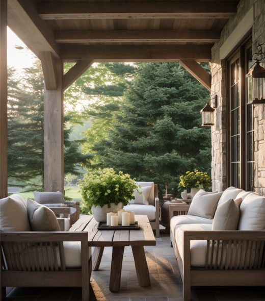 Custom timber covered porches create a comfortable outdoor extension of your home while adding beauty, shade, and year-round protection from North Idaho’s changing weather.